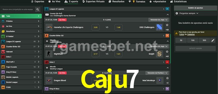 O Caju7 oferece uma grande seleção de opções de apostas em e-sports com probabilidades competitivas